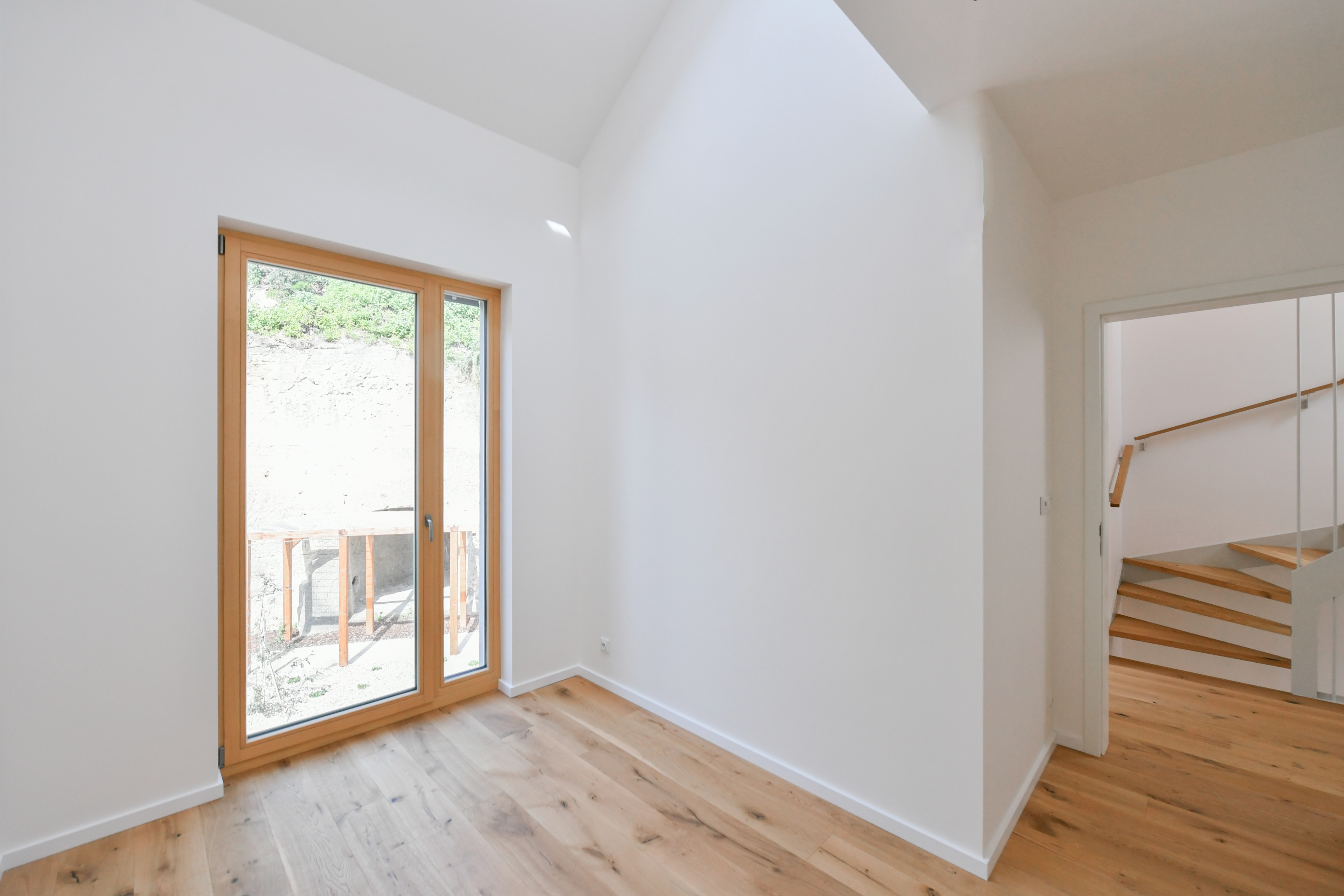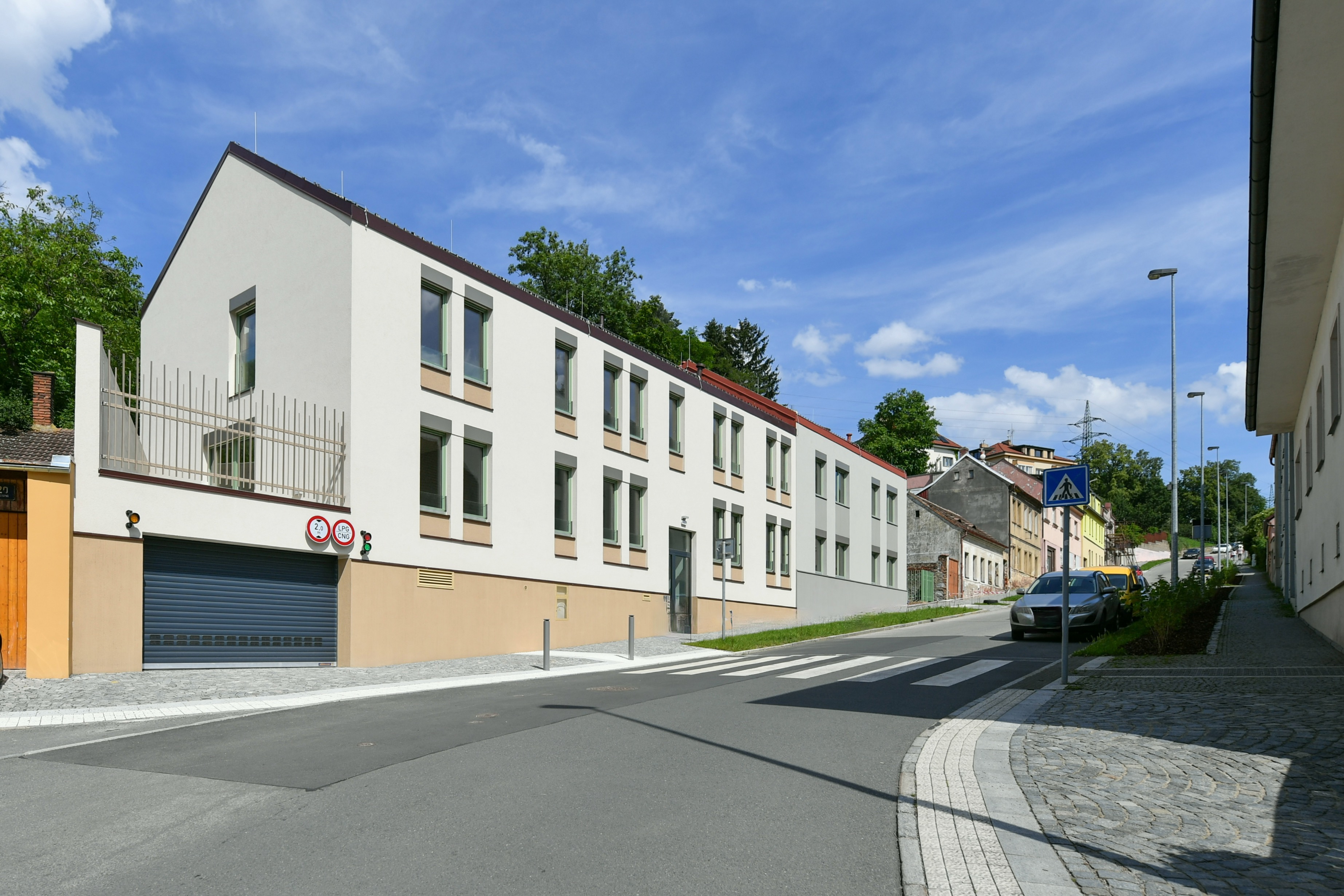 Byt č.2 je v podstatě řadový domek, který má samostatný vstup ze společné zahrady. K tomuto bytu náleží předzahrádka o velikosti 8,2 m2. Vzhledem ke svažitému terénu jsou přízemní okna směrem do ulice příjemně vyvýšena. Byt je rozložen do 3 podlaží, vestavěná půdní galerie není započítána v užitné ploše, nicméně může sloužit jako další pokoj či pracovna a dá se zde dodělat koupelna Proto tento byt ocení zejména klienti, kteří hledají dispozici větší než 4kk.